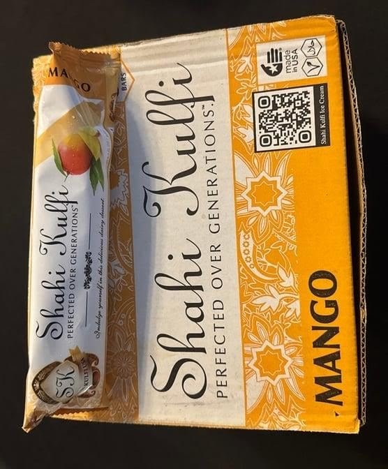 Creamy mango-flavored frozen dessert with hints of saffron and cardamom.